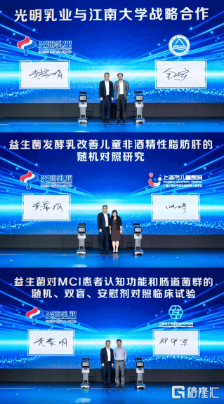 同时,光明乳业分别与上海市儿童医院消化感染科主任张婷、上海市生物医药技术研究院郑华军研究员签署了项目合作协议,未来将共同开展“益生菌发酵乳改善儿童非酒精性脂肪肝的随机对照”研究、“益生菌对MCI患者认知功能和肠道菌群的随机、双盲、安慰剂对照”临床试验等,深化产学研融合,破解行业难题,也为市场提供更多新品。