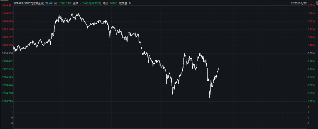 大宗商品市场方面,黄金盘中巨震,伦敦金现由涨转跌,跌幅多次超1%,盘中跌破3300美元/盎司,截至发稿盘中跌幅再次收窄。