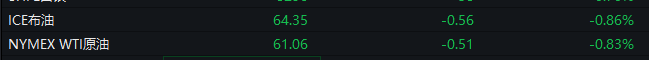 国际油价大幅下跌,截至发稿,ICE布油跌0.86%,NYMEX WTI原油跌0.83%。