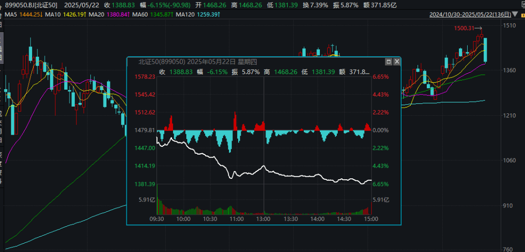 值得注意的是,北证50指数21日盘中一举突破1500点,刚刚创出历史新高。今日盘中大幅下探,午后跌超6%。