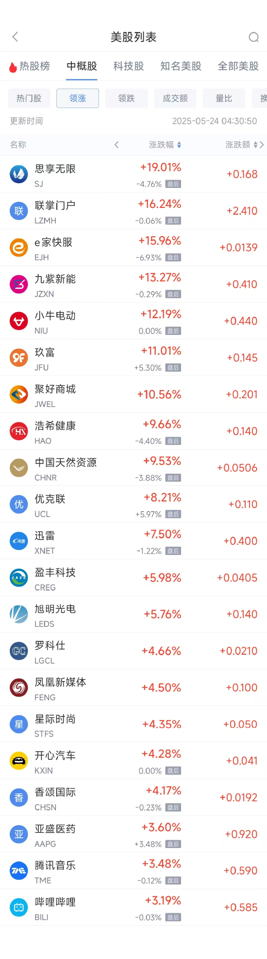 (截图来自新浪财经APP 行情-美股-中概股热门板块)下载新浪财经APP
