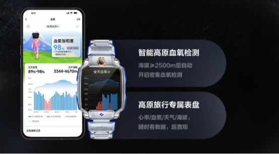在骑行等场景中,若Z11检测到孩子严重摔倒且长时间无回应,便会自动拨打紧急联系人电话,及时为孩子寻求援助。针对高原旅行场景,如川西旅游,Z11新增了智能高原血氧检测。当进入海拔大于2500M的高原地区后,手表会自动开启密集血氧监测,家长可随时查看相关数据,提前预警高原反应风险,让孩子既能尽情领略高原美景,又能确保身体健康。