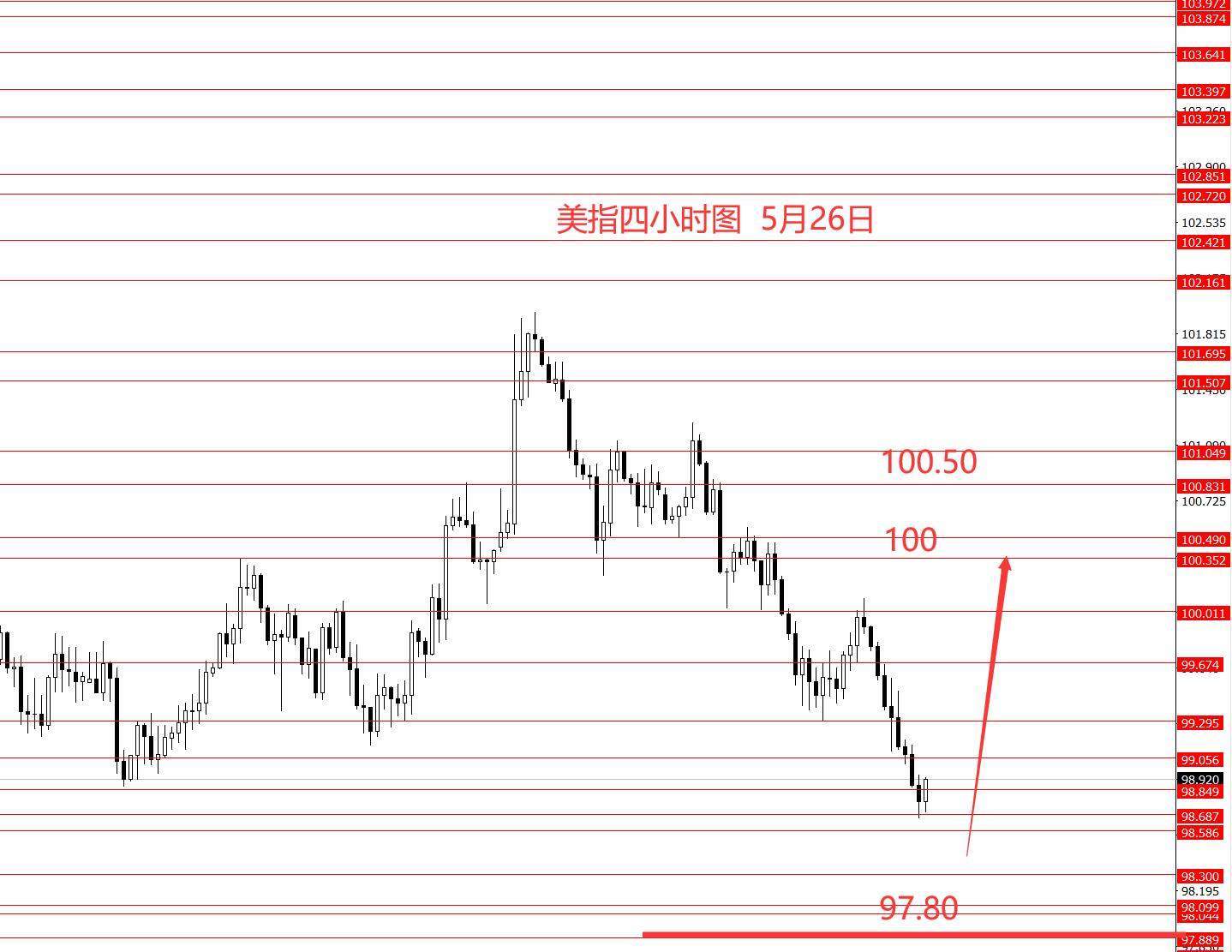 美指上周直接下行,到达99.00区域,周图收阴柱。从图形来看,美指中线仍是下跌当中的低位震荡,中线仍为下跌趋势,修整行情也还未结束,本周关注下方前期低点强支撑97.80区域强支撑,以上留意反弹信号,框架思路按97.80-100.00区间震荡格局操作,今日暂无具体操作建议,框架思路仅供参考吧。