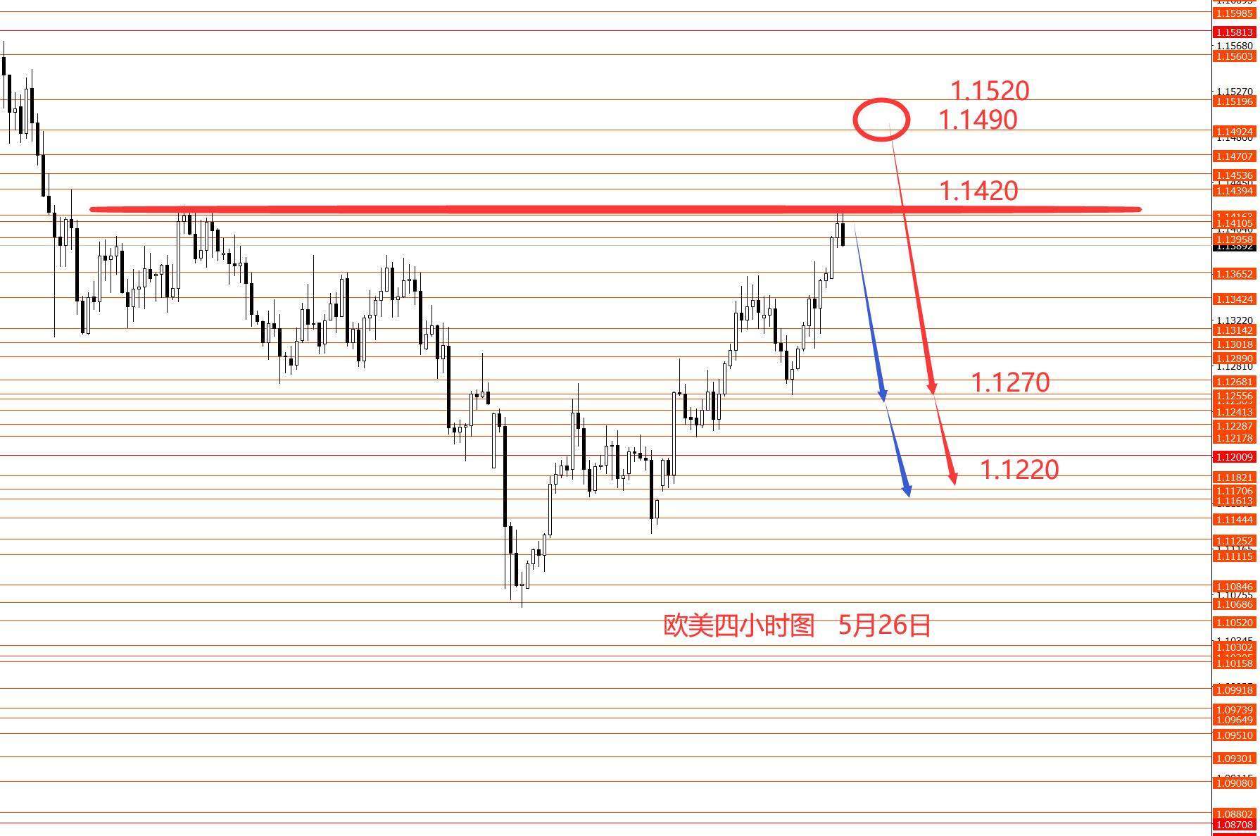 欧元上周直接上行,到达预期目标1.1340,周图收阳柱。从图形来看,今日早盘继续上行,目前图形仍为上涨趋势,但由于中线还是上涨当中的高位震荡区域,所以上方重点关注1.1490-1.1520区域强阻力,后市建议在右侧向下信号出现后高空欧元,抓1.1490-1.1270-1.1220的波段行情。今日不建议追多,因为1.1420也是强阻力,能不能上破,要看今天日线收盘才能确定。就目前这个位置,个人建议放弃多头行情,等待向下信号做空比较理想些。今日无具体操作建议。