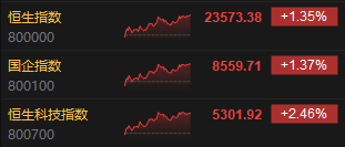 5月29日消息,港股三大指数全天强势,截至收盘,恒生指数涨1.35%,报23573.38点,恒生科技指数涨2.46%,国企指数涨1.37%。盘面上,科网股普涨,美团涨超6%,快手涨近5%,京东集团涨超4%,联想集团涨超3%;稳定币概念股强势上扬,连连数字涨近45%,众安在线涨超31%;生物技术股大涨,药明巨诺涨近20%;芯片股走高,华虹半导体涨超6%。