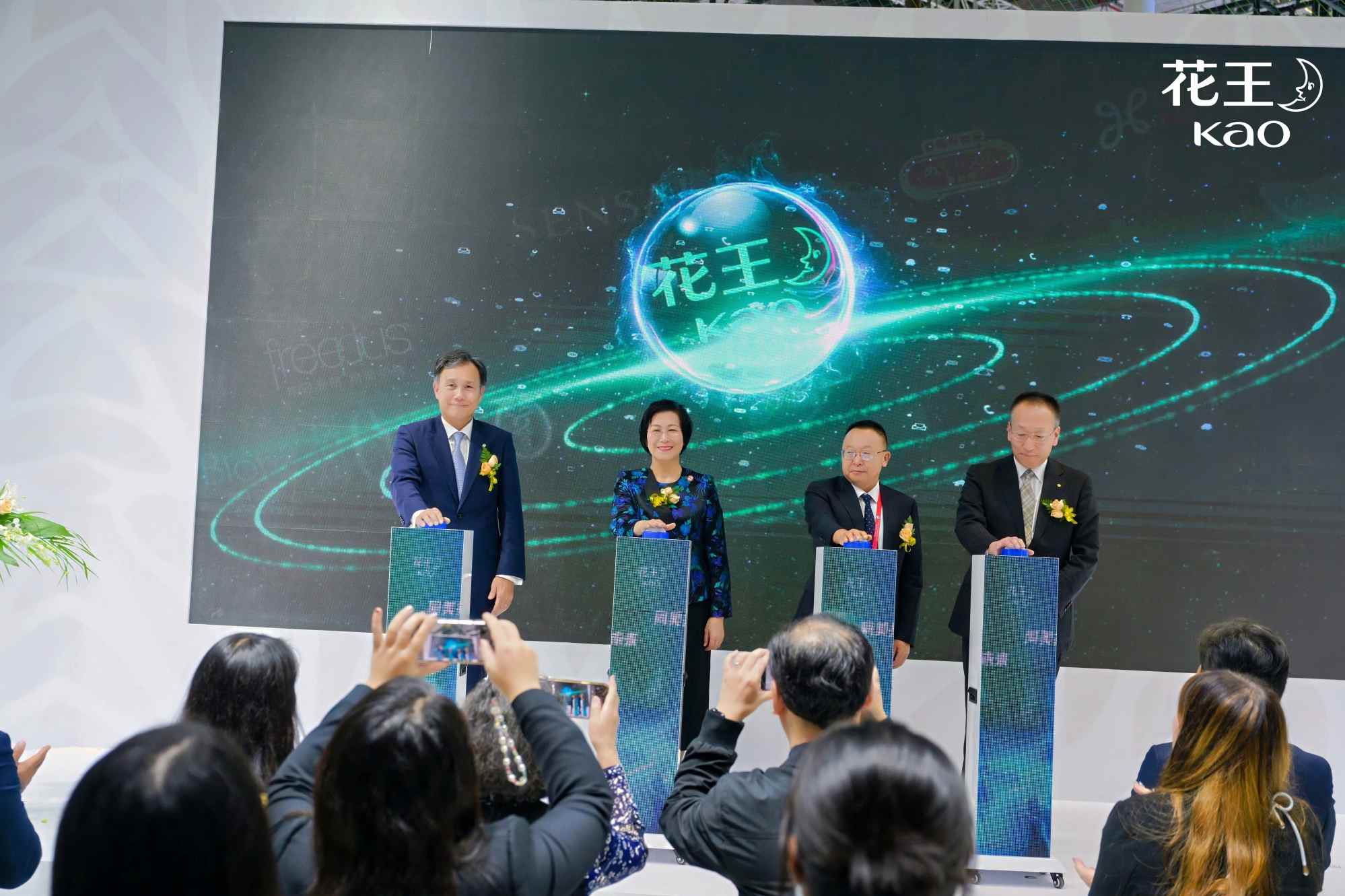 开馆仪式在庄重热烈的氛围中启动。商务部亚洲司二级巡视员宋学军、中国香料香精化妆品工业协会理事长颜江瑛,及花王(中国)董事长竹安将、花王集团常务执行委员研究开发部门统括久保英明等嘉宾莅临现场,助力花王展馆的开馆仪式。伴随嘉宾们同步按下启动装置,“同美共生,质造未来”的核心主题醒目点亮,标志着花王在本届进博会的精彩旅程正式启航。