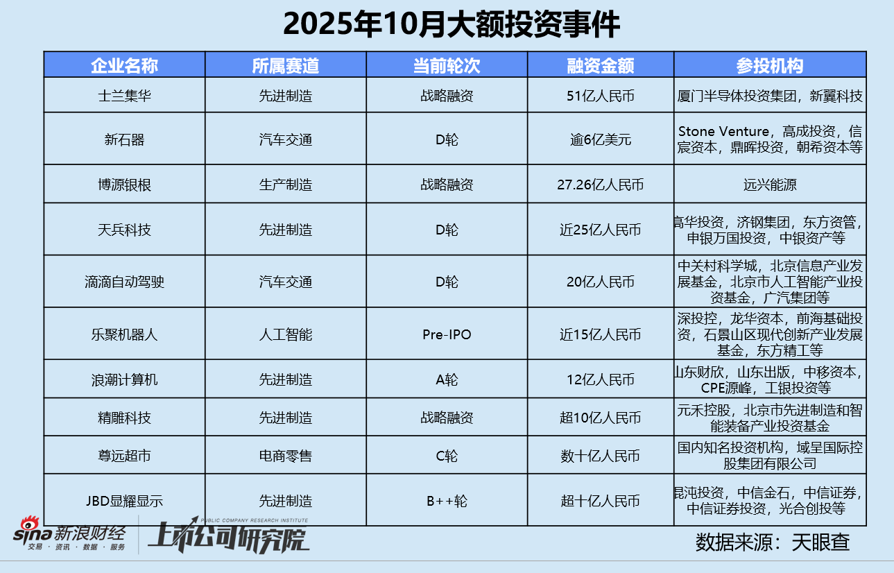 此外,本月大额融资以战略融资和D轮为主导,一方面成熟企业通过战略融资整合产业链资源、布局生态,体现“产业协同 + 长期布局”逻辑。另一方面,资本对相对中后期的企业商业化能力、市场地位都有较高的预期,资金将用于技术迭代、规模化扩张。