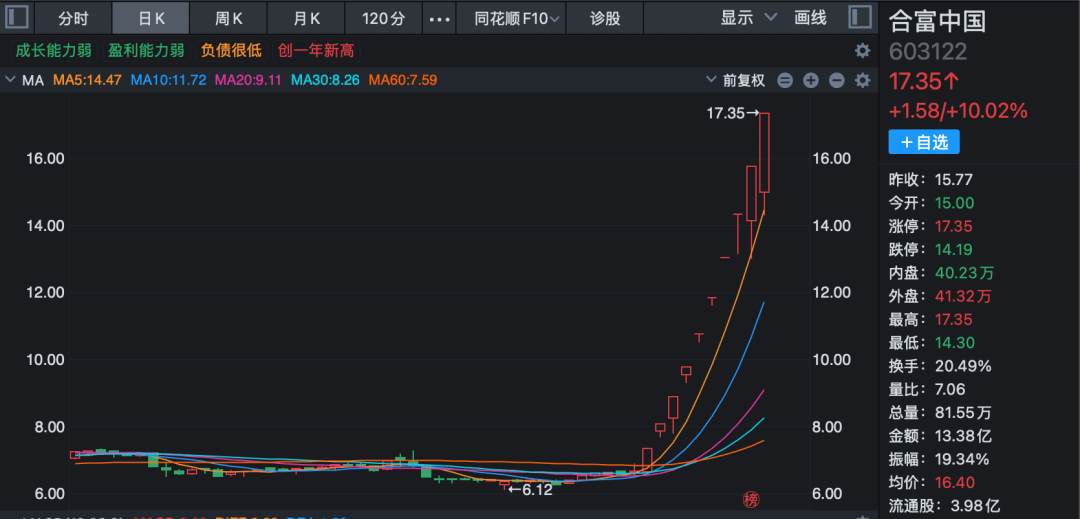 个股方面,合富中国(603122)涨停,走出10连板。合富中国此前公告,公司股价短期上涨幅度较大,存在市场情绪过热、非理性炒作风险。