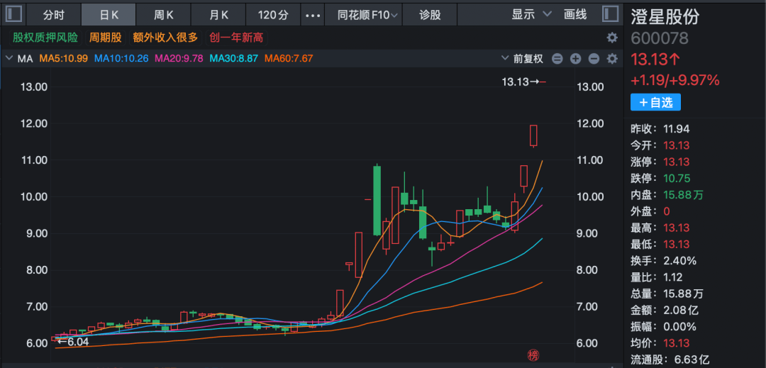 磷化工板块延续上周强势,澄星股份(600078)走出3连板,清水源(300437)涨超10%,云图控股(002539)、安纳达(002136)、云天化(600096)、司尔特(002538)跟涨。