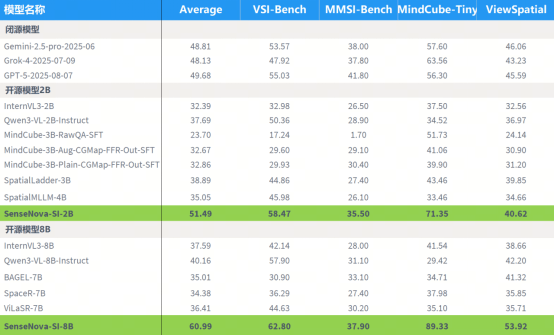 这次开源的SenseNova-SI空间智能大模型系列包括 2B 和 8B 两个规格。