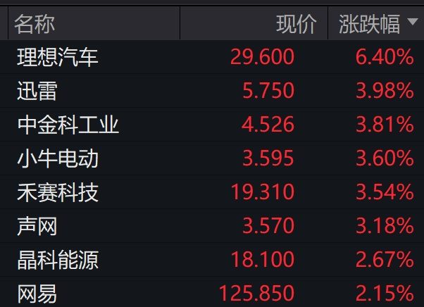 中概股多数飘红。迅雷、小牛电动、晶科能源、网易等中概股涨超2%。