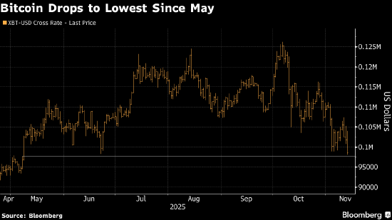 受新一轮避险情绪和科技股抛售拖累,比特币周四跌破10万美元大关。