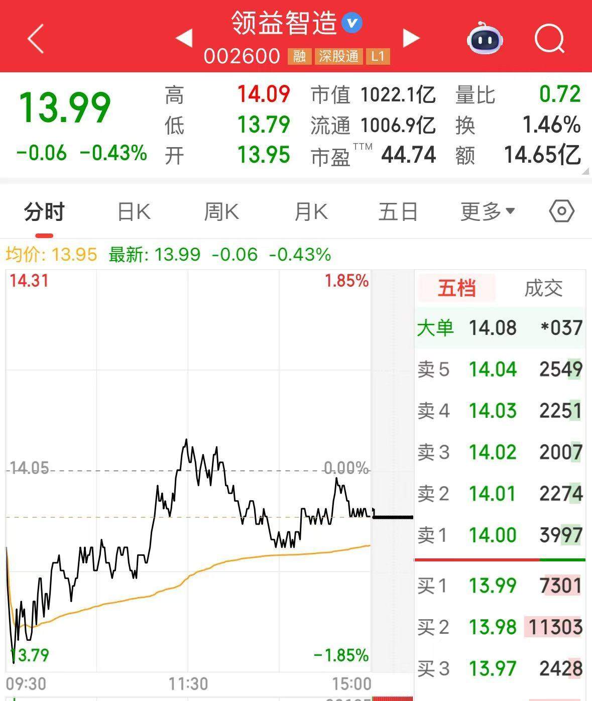 截至11月13日A股收盘,领益智造股价为下跌0.43%。