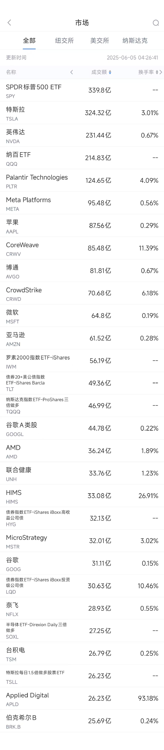 6月4日美股成交额前20:苹果A20芯片或采用台积电2nm工艺