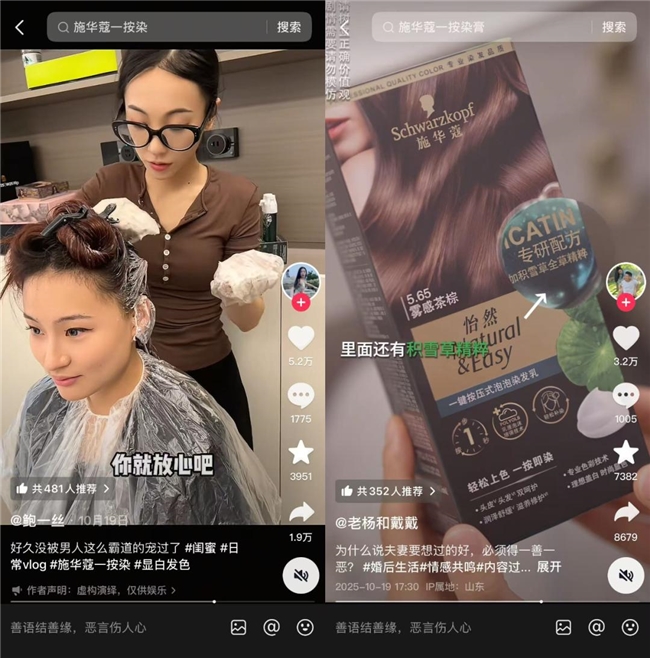 施华蔻首先以 “专业美发” 强化品牌心智。聚焦美护发人群的内容偏好,通过强故事性的生活日常 、使用体验、 剧情演绎等内容形式,快速吸引目标人群关注,激发内容爆文潜力。