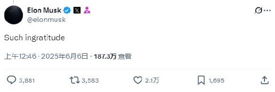 文章版权声明:除非注明,否则均为彻底翻脸,马斯克痛斥特朗普“忘恩负义”,身价一夜缩水339亿美元原创文章,转载或复制请以超链接形式并注明出处。