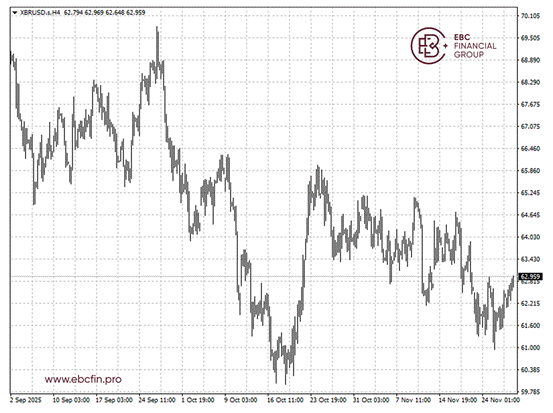 布伦特原油持续疲软,利好消息寥寥,因此涨势可能在63美元附近受阻,形成双顶形态。若出现这种情况,油价或将跌破62美元关口。