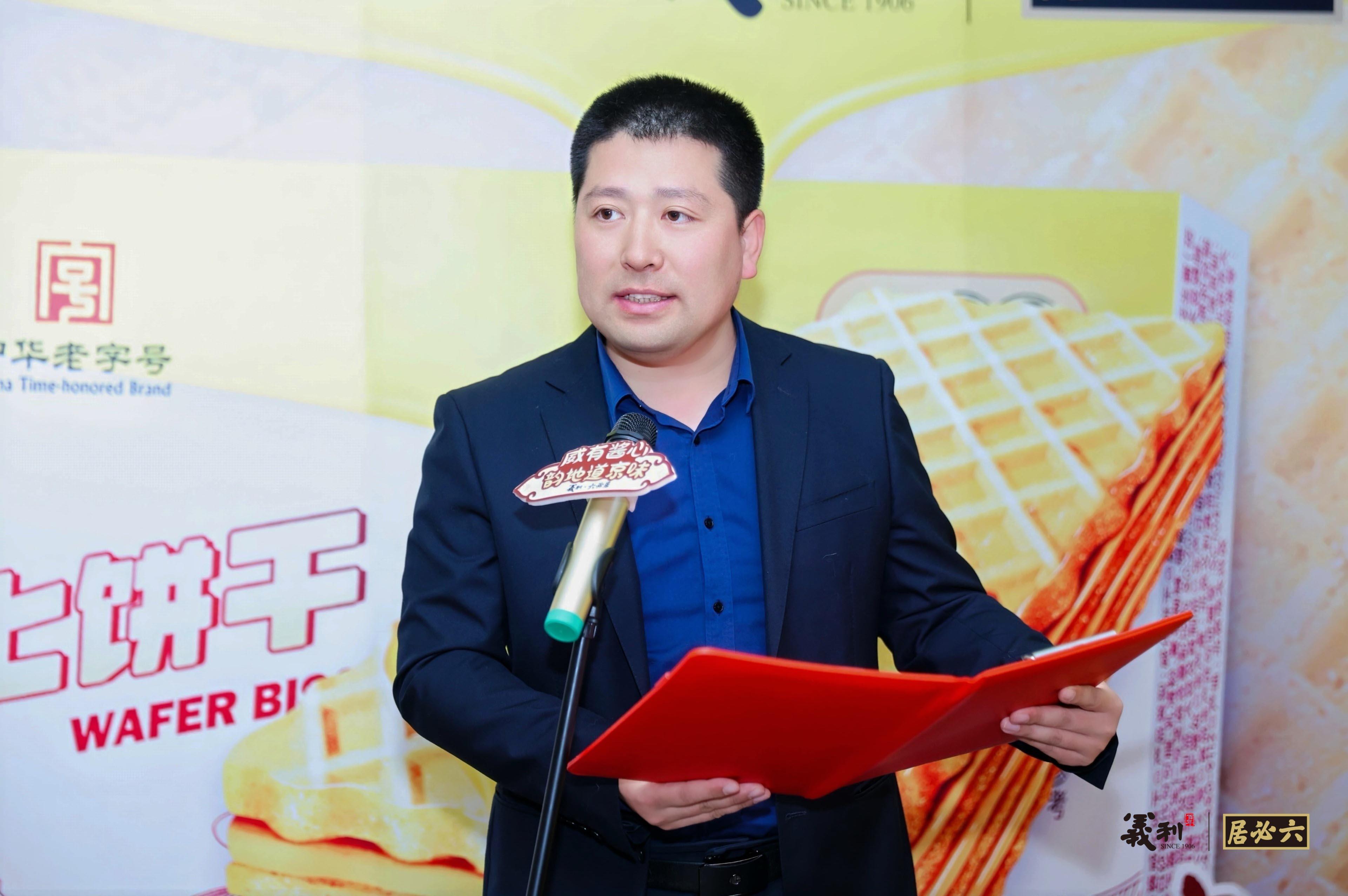 北京义利食品有限公司党总支书记沈庆伟、党总支副书记、总经理张旭升,北京六必居食品有限公司总经理俞江富、相关部门负责人及义利公司的渠道伙伴们共同出席,见证“义利×六必居二八酱味麻酱威化饼干”的隆重上市。