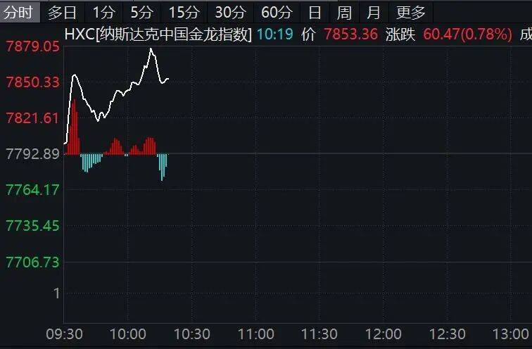 纳斯达克中国金龙指数一度涨超1%,截至发稿,涨超0.7%。正业生物涨逾7%,阿特斯太阳能(000591)、新东方、网易等涨近5%。诺亚控股、微博等涨逾3%。