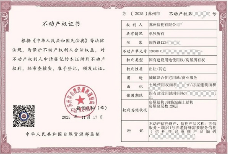 2025年11月,江苏省宣布将在南京市、苏州市两地开展不动产信托登记试点。随后,苏州完成了江苏省首单不动产信托财产登记。