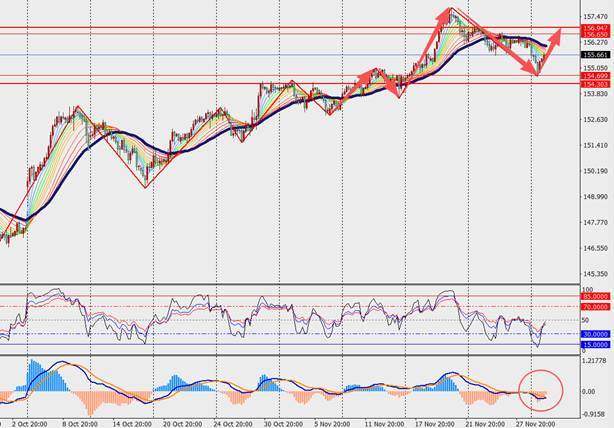 第一阻力位:156.40 第一支撑位:154.90