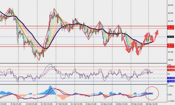 技术面:美元兑日元H4级别下跌反弹,但依旧在48日多空分界线下方。另一方面,MACD双线和量能柱在零轴附近底背离收敛。尽管日本第三季度资本支出同比增长2.9%,增速较前期7.6%明显放缓,但该数据并未削弱市场对日本经济温和复苏的信心。