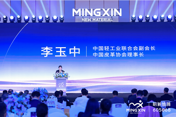 中国轻工业联合会副会长、中国皮革协会理事长李玉中从时代机遇与行业视角出发,高度肯定了明新旭腾多年来深耕行业的发展韧性和责任担当,称赞为中国皮革行业转型升级树立了典范,并寄语企业以“双庆”为新起点,继续发扬“二十年磨一剑”的专注精神,争做“新质生产力”的先锋,勇当“绿色低碳发展”的典范。