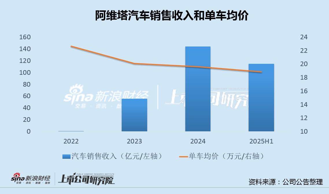 从2022年底开启批量交付以来,阿维塔单车均价持续下降,2024年已跌破20万元,今年上半年继续下滑。
