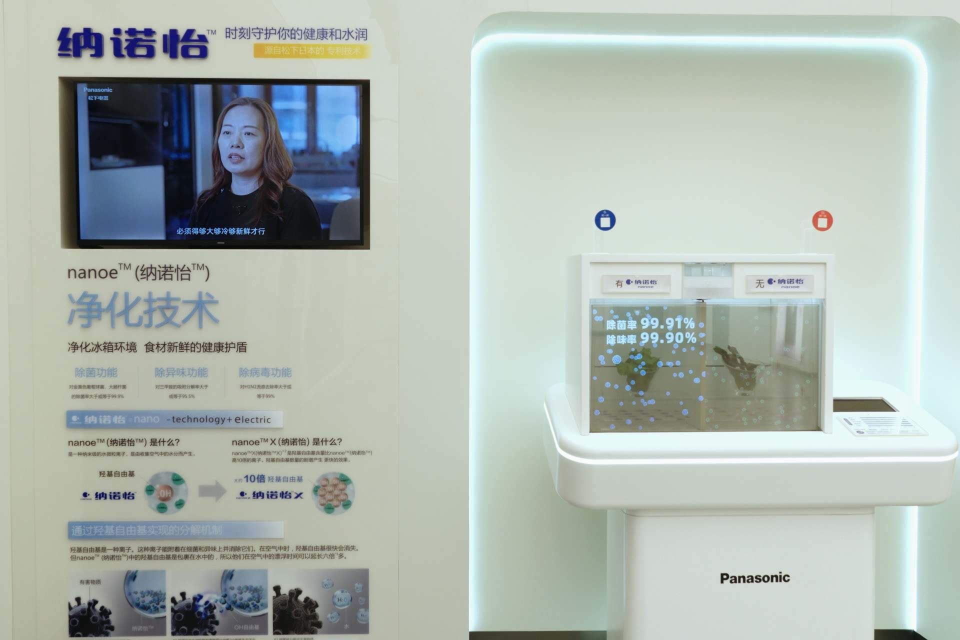 该系列冰箱搭载了松下独有的纳诺怡™技术,通过高压电将空气中的水分子分解为纳米级带电水离子,这些水离子含有高活性羟基自由基(・OH),能够捕捉并分解异味分子,抑制细菌活性,最终产物以水为主,无化学残留,仿若自然净化。实验室测试结果显示,纳诺怡?技术对大肠埃希菌、金黄色葡萄球菌等常见细菌的24 小时抑制率超过90%,还能有效分解食物的残留异味。