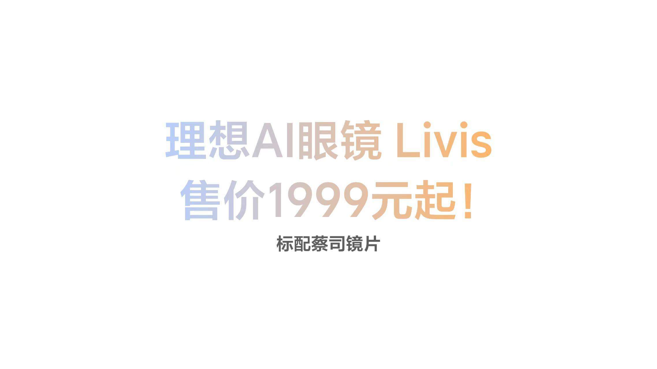 2025年12月3日,理想汽车正式发布旗下最强人工智能附件――理想AI眼镜 Livis。理想携手蔡司达成全球战略合作,Livis作为双方合作的首款落地产品,全系标配蔡司高品质镜片,并提供屈光、感光变色、墨镜等多种版本,全国统一零售价1999元起。首销月截止12月31日,可享受15%的国家补贴。12月3日起,用户可在理想汽车App商城、京东理想智能眼镜官方旗舰店下单购买;理想全国零售中心店也将陆续开放选购服务,详情可查询理想官网。12月中下旬起,蔡司天猫、京东官方旗舰店及蔡司官方授权合作门店将同步开售。