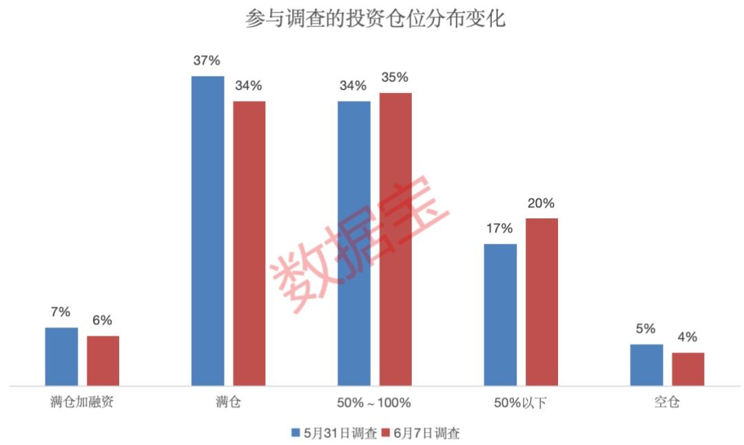 从仓位动向来看,本周选择“持仓不动”的受访者占据半数,比例约为50%;28%的受访者进行了“加仓”操作;18%的受访者则有所“减仓”。