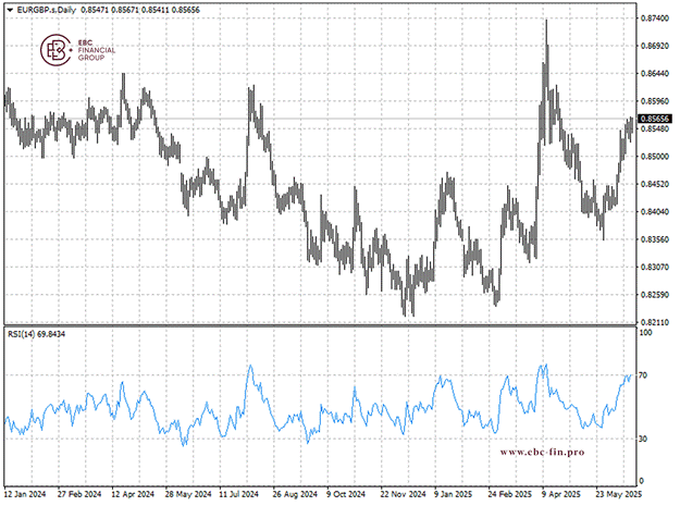 相对强弱指标和经济基本面共同预示着欧元兑英镑短期内可能出现回调,初步支撑位估计在 0.8500附近。