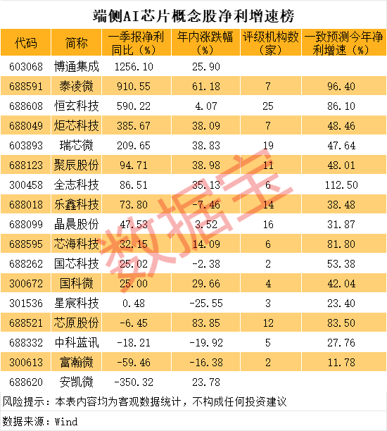部分个股一季报业绩已经爆发式增长,博通集成(603068)、泰凌微、恒玄科技、炬芯科技、瑞芯微等个股净利增速均超200%,聚辰股份、全志科技(300458)、乐鑫科技(688018)等个股净利增速均超70%。