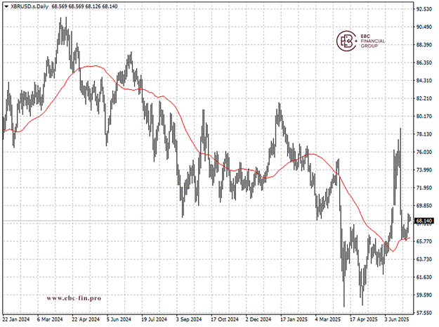 布伦特原油已从50日移动均线反弹,然而上涨势头正在减弱。考虑到贸易谈判的不确定性加剧,预计在尘埃落定之前,价格将有所走软。