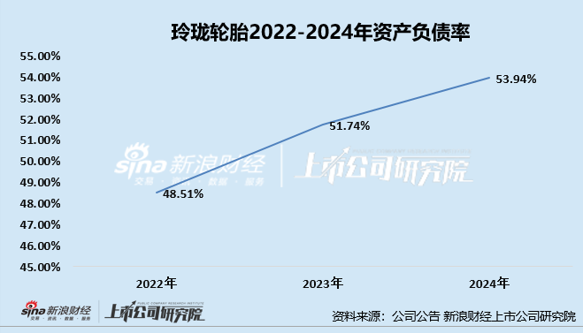公司的资金状况更是“捉襟见肘”。2022年后,公司的资产负债率持续爬坡,2022-2024年公司的资产负债率分别为 48.51%、51.74%、53.94%。