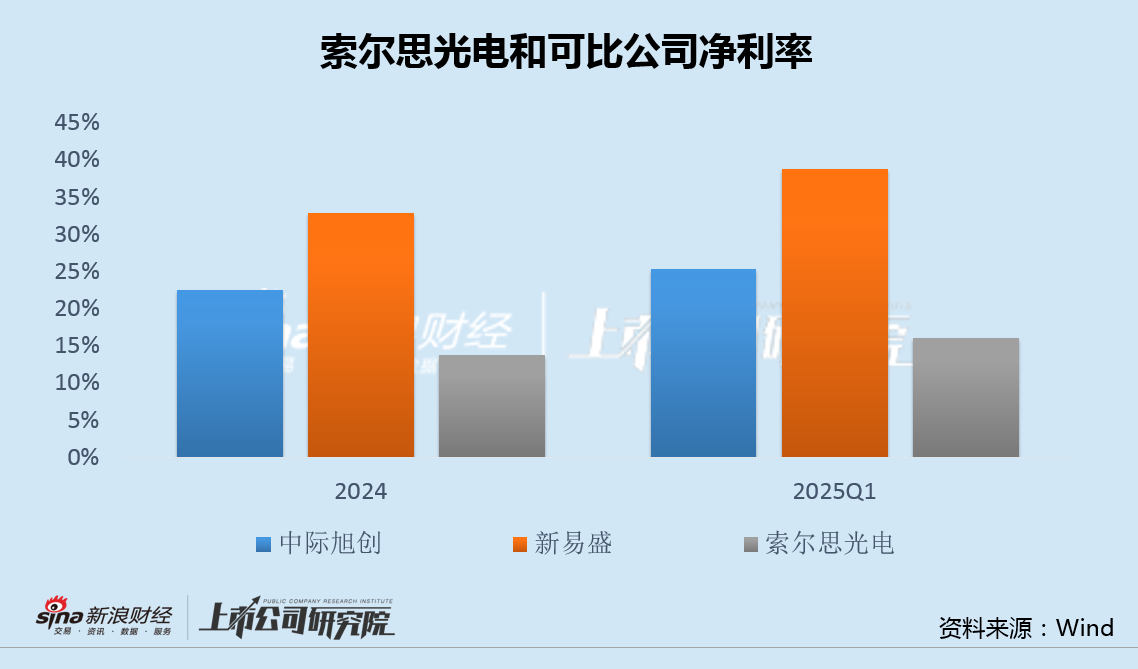 高溢价收购的同时,标的盈利能力似乎并无优势。数据显示,2024年和2025年一季度,索尔思光电净利率为15%左右,相较于中际旭创20%以上以及新易盛30%以上的净利率明显偏低。