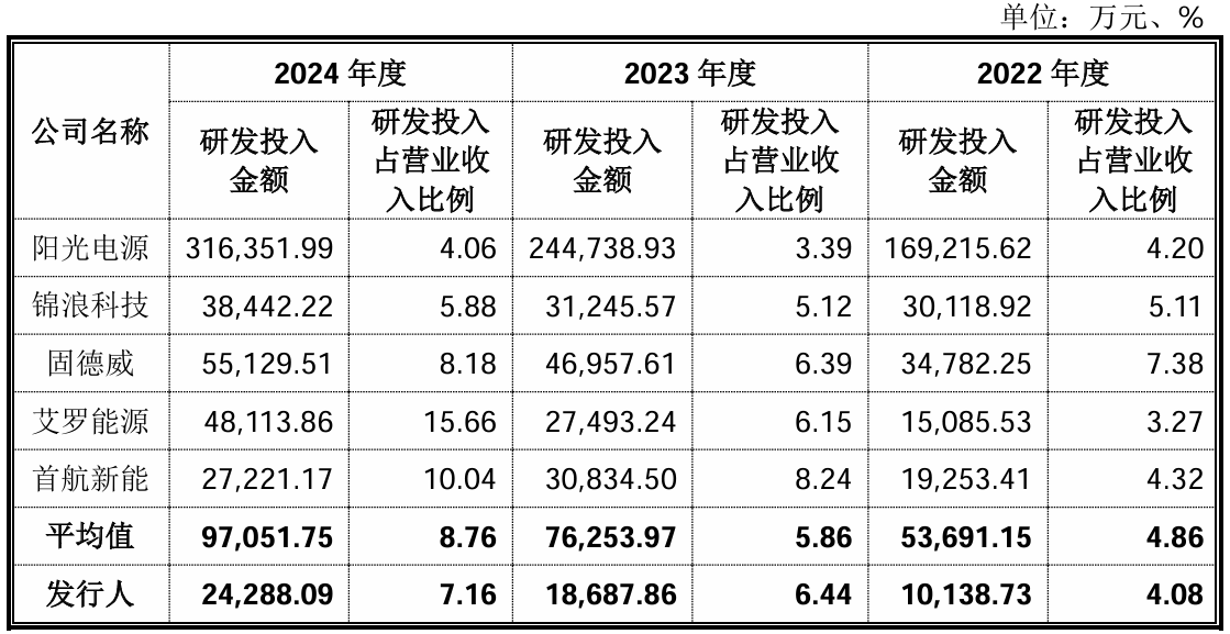 此外,截至2025年3月31日,公司的发明专利数量为26项,而其他同业可比公司中发明专利数量最少的艾罗能源就有58项。公司的发明专利数量还不到艾罗能源的一半。这一数据反映出公司在核心专利储备上与行业头部企业仍存在明显差距。
