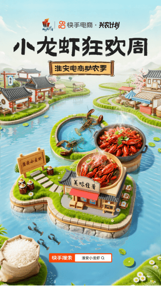 为此,5月15日至6月30日,快手电商推出“淮安电商季-小龙虾狂欢周”活动,面向小龙虾售卖释放流量激励,针对新商提供冷启助推,并携手多位快手达人开展溯源直播,以优质达人内容撬动更多销售转化。值得一提的是,5月21日,快手小店还将进行淮安专场直播,官方助推源产地好虾开拓线上新销路。