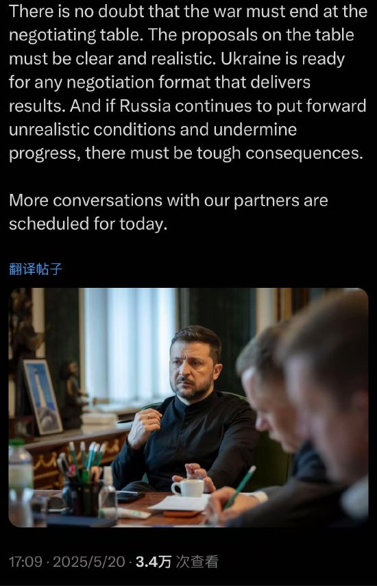 “毫无疑问,冲突必须在谈判桌上终结。”泽连斯基表示,“乌克兰已做好准备,接受任何能带来实际成果的谈判形式。”