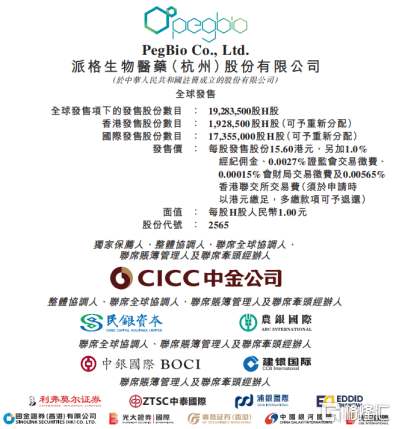 格隆汇获悉,派格生物医药(杭州)股份有限公司(简称:派格生物)于5月19日至22日招股,中金公司担任独家保荐人。据悉,派格生物于5月15日披露过聆讯后资料集。