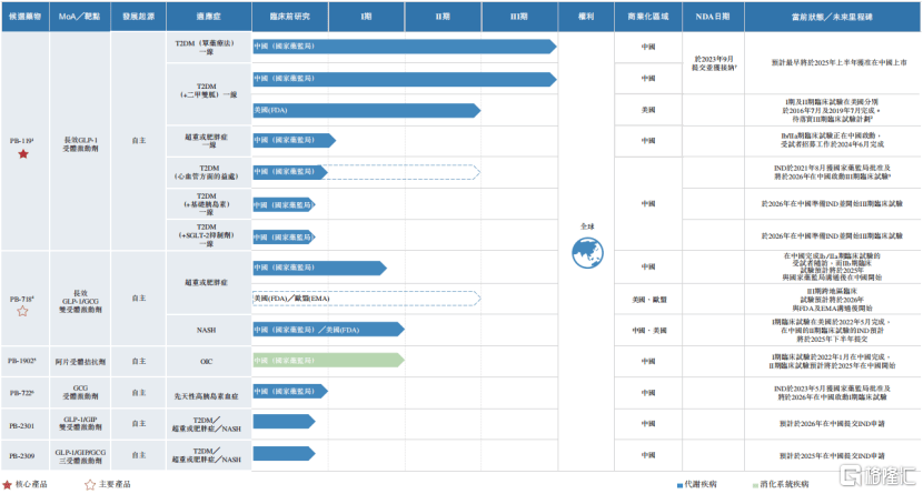 PB-119主要用于2型糖尿病(T2DM)及肥胖症一线治疗。根据灼识咨询的资料,长效GLP-1受体激动剂是指需要每周一次给药方案的产品,如PB-119;而短效GLP-1受体激动剂则需要每天一次或多次给药方案。