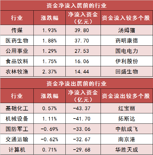 3.传媒等行业实现净流入