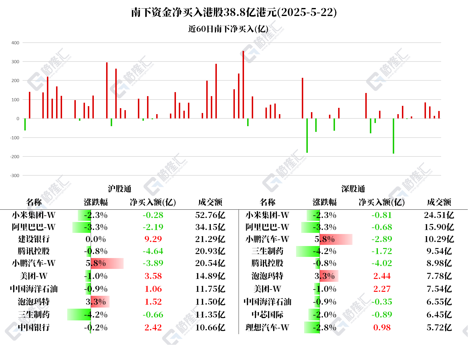 净买入建设银行9.29亿、美团-W 5.84亿、泡泡玛特3.96亿、中国银行2.41亿;