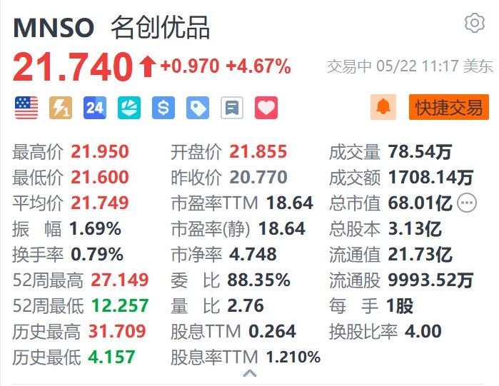 美股异动丨名创优品涨超4.6% 机构看好海外市场或成长期催化剂