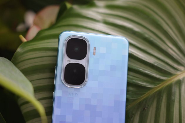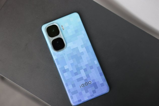 iQOO Neo10 Pro+首次与宝马M Motorsport合作,推出‘超级像素’限定配色,312块蓝冰像素格以渐变工艺呈现北极哑光蓝至赛博霓虹蓝的24种色阶变化,光线流转间仿佛致敬经典8-bit像素游戏文化。磨砂玻璃后盖触感细腻,搭配铝合金拉丝纹理的铟丝中框,兼顾轻薄(8.3mm厚度/217g)与质感,握持时无明显压手感,横握游戏时边框防滑性出色。后置悬浮舷窗镜头模组采用椭圆Deco设计,主摄与超广角镜头隐于黑色玻璃下,科技感与简约风格并存。机身顶部保留红外遥控,底部配备120W充电接口与立体声双扬声器,实用性拉满。