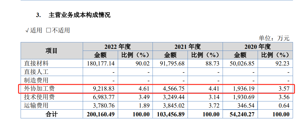 华曦达在A股招股书“风险因素”章节与“营业成本分析”章节披露的各期外协加工服务采购金额存在矛盾,尤其是2020年的金额相差高达1679.51万元。