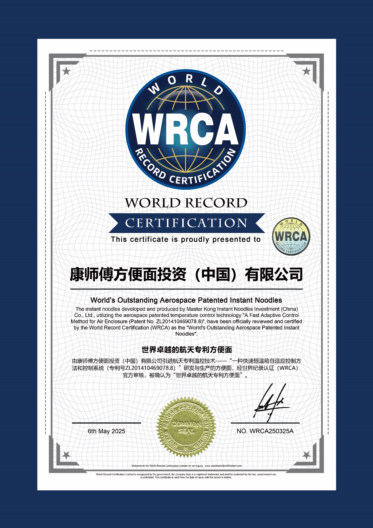 从太空到餐桌,康师傅用航天科技重新定义一碗面的品质高度。回顾过往这些年,康师傅通过与中国航天基金会的战略合作,追求航天标准,对标航天品质,并于2024年成为全国首个应用航天专利的方便面企业,将航天温控专利技术赋能全线产品,让面条口感不受地域、温度等控制,始终劲道爽滑,2025年,康师傅还获得WRCA“世界卓越的航天专利方便面”认证。