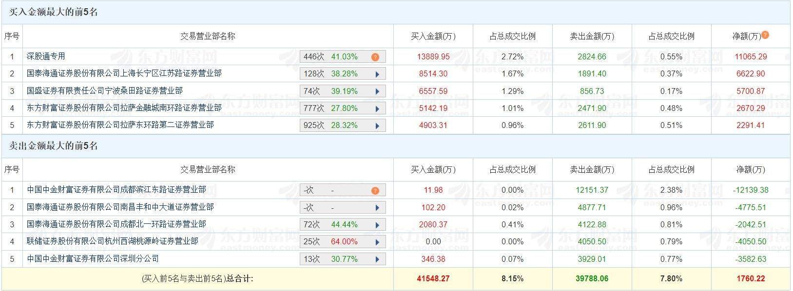 A股龙虎榜丨此前4连板涨停云内动力跌2.52%,换手率44.83%,深股通净买入1.11亿,游资宁波桑田路净买入5701万,成都系净卖出2043万