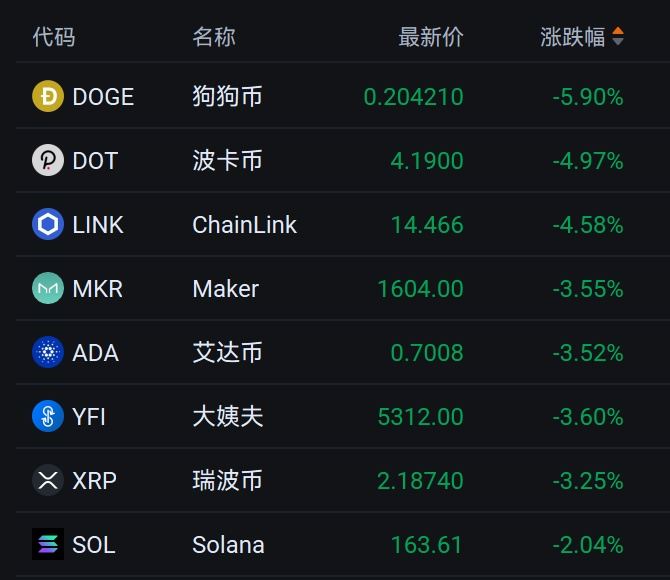 另外,其他数字货币更是暴跌。狗狗币跌近6%。
