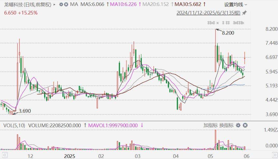 格隆汇6月3日|龙蟠科技(2465.HK)跳空高开,盘初再度拉升涨21.14%报6.99港元,开盘不到10分钟成交额已达1.5亿港元。